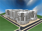 The ground-plot sized 40'000 sq.m shall receive a common ground-floor. Above the ground-floor, seven to nine-story residential buildings will be constructed. In the elevated courtyard enclosed by the buildings, there will be an ornamental garden below the courtyard.