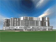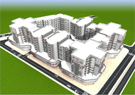 The ground-plot sized 40'000 sq.m shall receive a common ground-floor. Above the ground-floor, seven to nine-story residential buildings will be constructed. In the elevated courtyard enclosed by the buildings, there will be an ornamental garden below the courtyard.